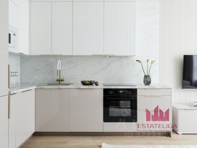 Кухня современная, с обеденной зоной для домашних ужинов, из кухни есть выход на просторный балкон. Ванная комната оформлена в современном стиле и оснащена тропическим душем.