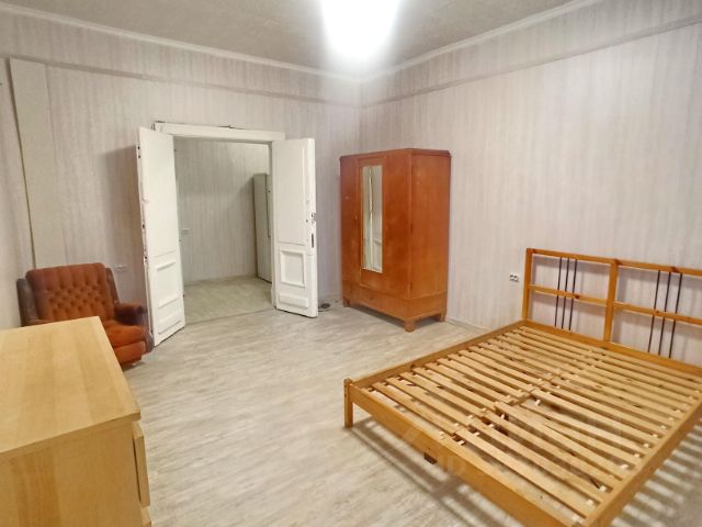 В большой комнате, вместительный шкаф, диван, кровать, большой телевизор, тумбочка, комод новый. Комната очень просторная.