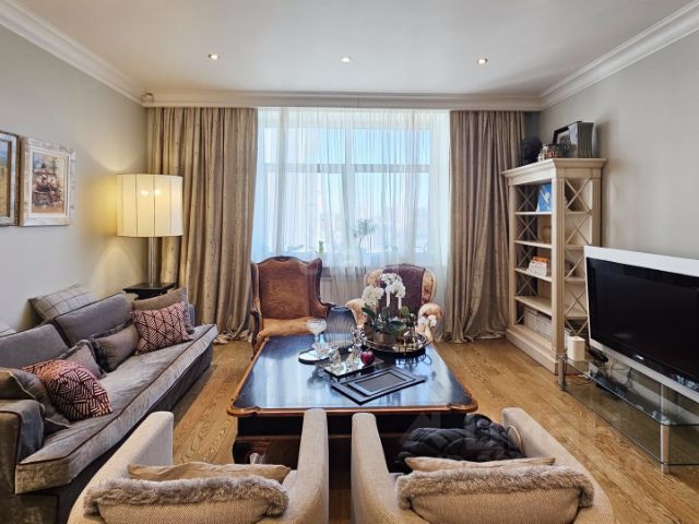 ID 44322. Превосходная 3-комнатная квартира в ЖК "Резиденция Монэ". Общая площадь 110 кв. м. Премиальная дизайнерская отделка с использованием натурального дерева и камня. Интерьер в стиле современной классики. Высокие потолки с контурной подсветкой и панорамное остекление. Квартира полностью укомплектована дизайнерской мебелью и техникой ведущих брендов. Установлены кондиционеры, теплые полы, высокоскоростной интернет. Пространство грамотно зонировано: гостиная-столовая-кухня со встроенной техникой Smeg, спальня с ванной комнатой, вторая спальня, ванная комната с душевой, холл. Окна выходят в обустроенный двор. Дом относится к премиум-сегменту: круглосуточная охрана, консьерж, закрытая территория. Во дворе организована детская площадка. В комплексе открыт фитнес-клуб Gym & Pilates. Развитая инфраструктура района: в шаговой доступности кафе, рестораны, супермаркеты, фитнес-клубы, школы и детские сады. До станции метро "Улица 1905 года" - 9 минут пешком. Будем рады рассмотреть арендаторов с детьми. Сдается 3-комнатная квартира с детьми на улице 2-я Звенигородская в Москве.