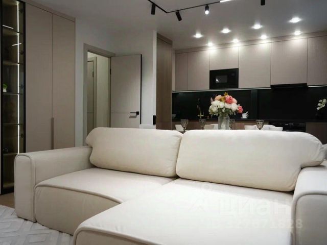 Интерьер квартиры оформлен по индивидуальному проекту итальянского дизайнера. Функциональная, комфортная, с высокими потолками, окна жилых комнат выходят в тихий двор, разноуровневое освещение создает приятную атмосферу.
