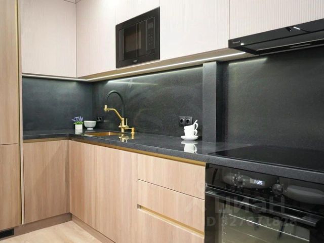 Кухня оборудована всей необходимой бытовой техникой: индукционная варочная поверхность, духовой шкаф, посудомоечная машина, новая встроенная СВЧ-печь, электрический чайник, двухкамерный холодильник (с морозилкой) и отдельная морозильная камера. В пользование предлагается набор посуды и столовые приборы.