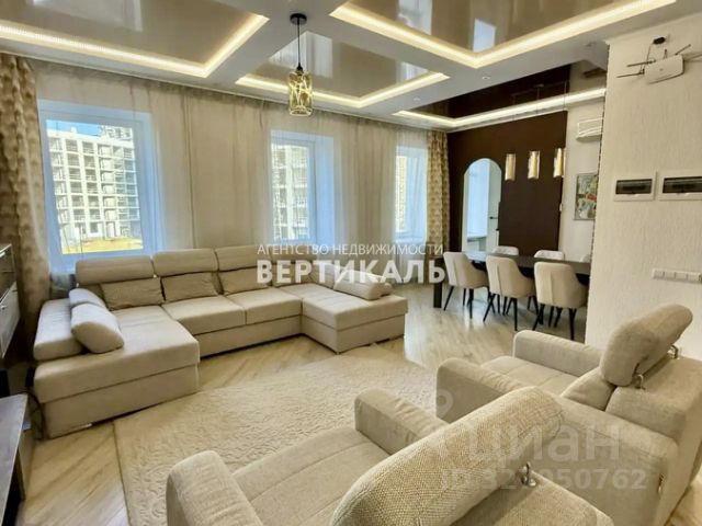 Кухня- настоящий рай для кулинара - оборудована практичной мебелью с встроенной техникой: варочная панель, духовка, вытяжка, посудомоечная машина (все -Electrolux), холодильник Liebherr. Кухня соединена с гостиной (17.7 кв.м), где разместились обеденный стол и гостевой гобеленовый диван, кондиционер, возможно установить телевизор и аудиосистему.