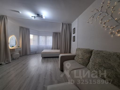Вторая комната (кабинет / детская / гостевая): раскладной диван (двуспальное место), встроенная гардеробная, рабочее место, телевизор.