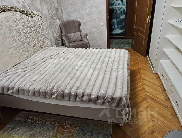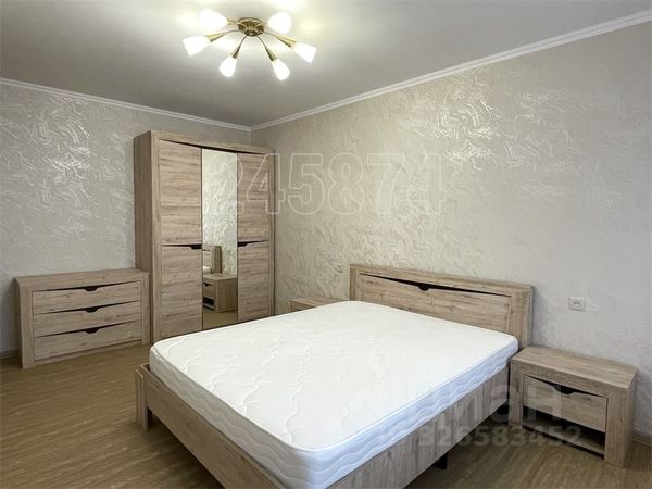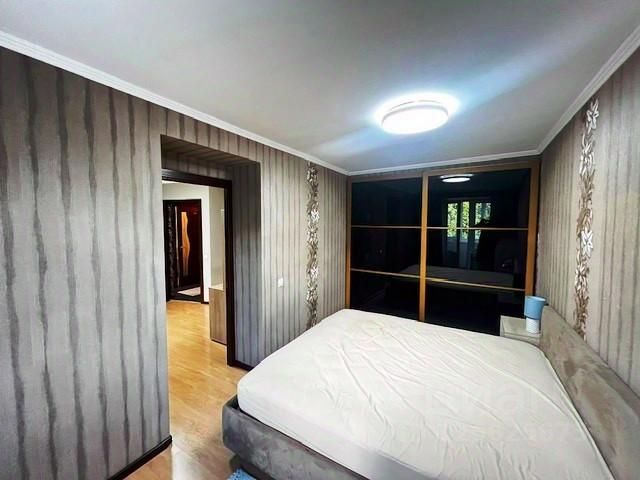 Спальня: двуспальная кровать с новым ортопедическим матрасом, шкафы, трюмо с зеркалом.