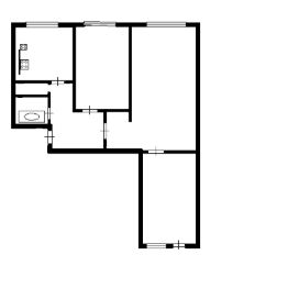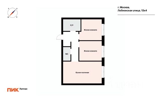 Две изолированные комнаты (~12 м² каждая), разделённые коридором: