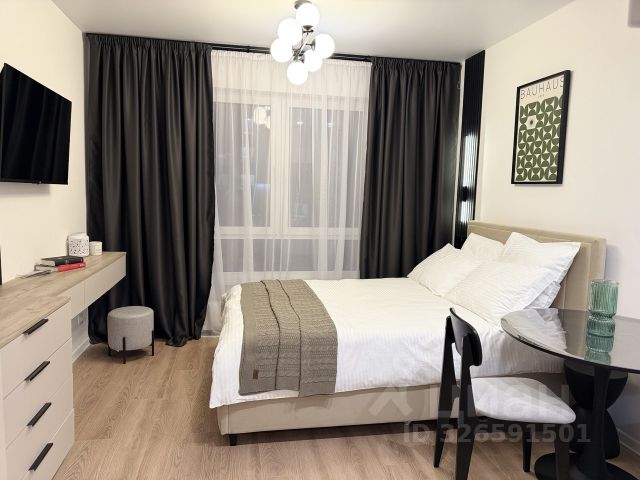 Вторая комната (кабинет / детская / гостевая): раскладной диван (двуспальное место), встроенная гардеробная, рабочее место, телевизор.