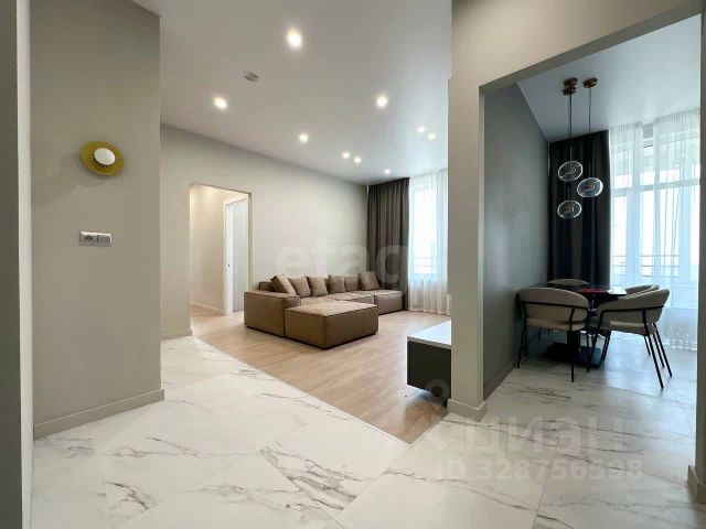 Стильная квартира с новым дизайнерским ремонтом в доме бизнес-класса. Дом построен в 2022 году, соседи уже сделали ремонты, шумные работы завершены. Панорамные виды на город и замечательный уютный двор