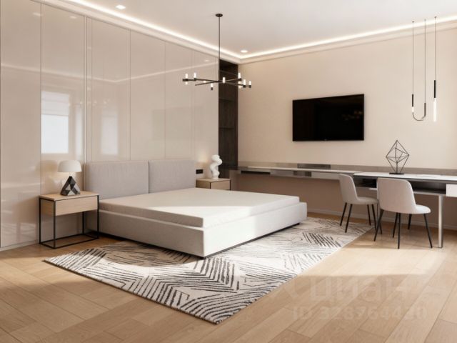 Многопозиционное освещение во всех комнатах, в коридоре и санузле. Шторы в гостиной с электроприводом. Телевизор Samsung 8K и уютный белый замшевый диван станут любимым местом притяжения для Вашей семьи или друзей.