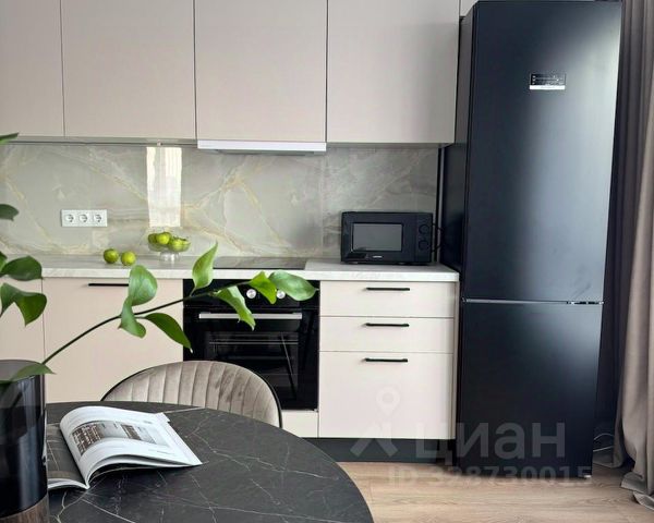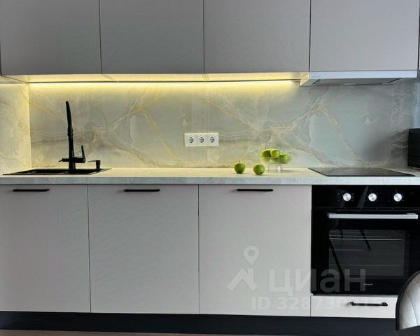 Современная лаконичная кухня оборудована полным комплектом встроенной техники - холодильник, индукционная варочная поверхность, духовой шкаф, посудомоечная машина и вытяжка. Обеденная группа с отдельным освещением идеально дополняет кухонную зону, а большая площадь позволяет установить большой стол для приема гостей или диван.