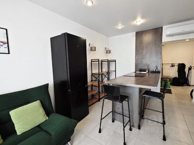 - в комнате есть отдельные мебелированные зоны: спальни, гостиной, мини рабочего кабинета со стеллажами для хранения, выполняющими зонирование, кондиционер, Wi-Fi.