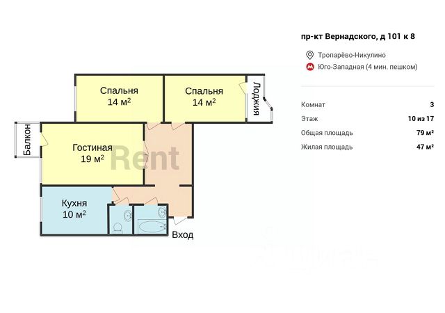 • ✓ Ищете объявления об аренде 3-комнатных квартир рядом с метро Проспект Вернадского (Большая кольцевая линия)?