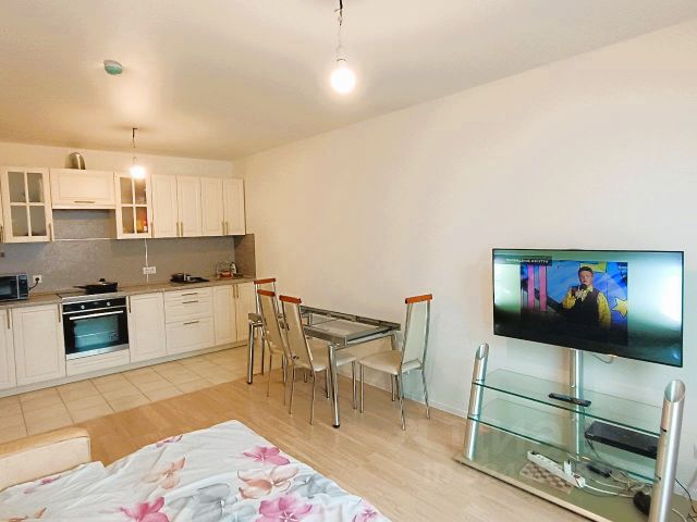 В квартире есть кондиционер, холодильник, стиральная машина, утюг, гладильная доска, сушилка для белья, эл. чайник, пылесос, микроволновка, телевизор. Из мебели имеется: прихожая, письменный стол, угловой диван, диван-аккордеон, 2 кресла (раскладываются), двухспальная кровать, комод, столик с зеркалом, стол со стульями на кухне, гостиная. Наличие мебели можем обсудить. Ванная комната оснащена ванной, раковиной и стиральной машиной. Также имеется одна лоджия, где натянуты веревки для сушки белья. Соседи тихие и доброжелательные.