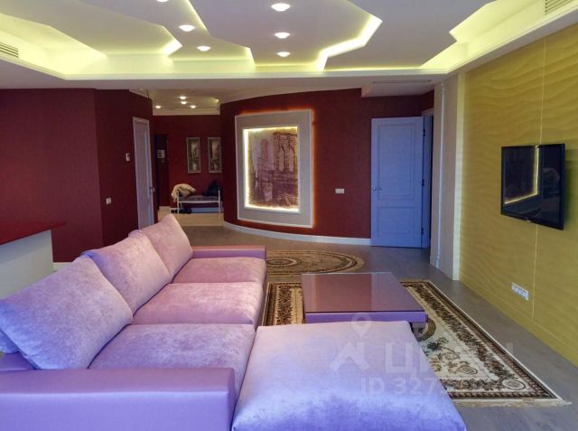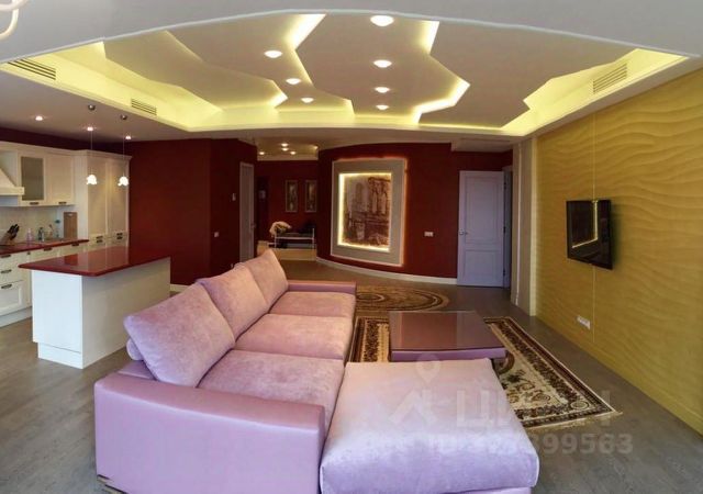 6.Оборудованная гостиная для просмотра всей семьей фильмов и телепередач: огромный телевизор 86 дюймов 4K 120Hz, кабельная аудиоподготовка, шторы димаут c электроприводом, большой и очень удобный диван.