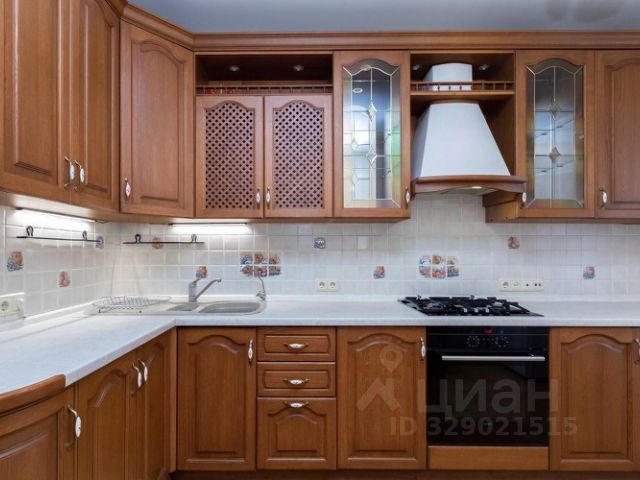 КУХНЯ с итальянским кухонным гарнитуром из натурального дерева. Мраморная столешница, удобная двойная каменная мойка, посудомоечная машина CANDY, встроенная газовая варочная панель + встроенный духовой шкаф SIEMENS, 2-х камерный холодильник SAMSUNG, обеденная группа (стол + стулья).