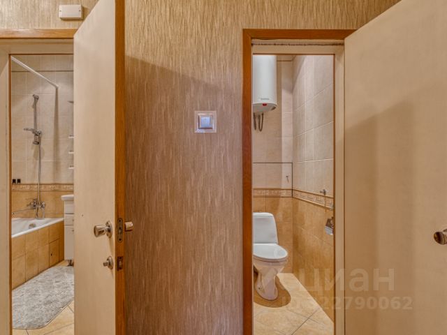 * 1-й: ванна (отдельно стоящая), душевая кабина, туалет, раковина с комодом, гигиенический душ.
