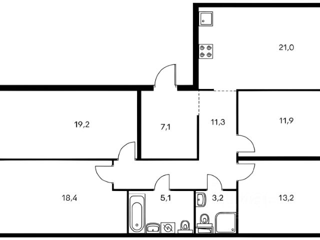 От года, комм. платежи включены (без счётчиков), без комиссии, залог 142 900 ₽