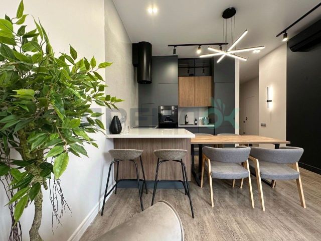 Оснащение: дизайнерское сценарное освещение (несколько режимов, управление одной кнопкой), плотные шторы-блэкаут в спальне. Мебель и техника: полностью укомплектована (встроенный холодильник, духовка/микроволновка, посудомоечная машина, мелкая техника - чайник, блендер и др.; диван, кровати с ортопедическими матрасами, шкафы, телевизор).