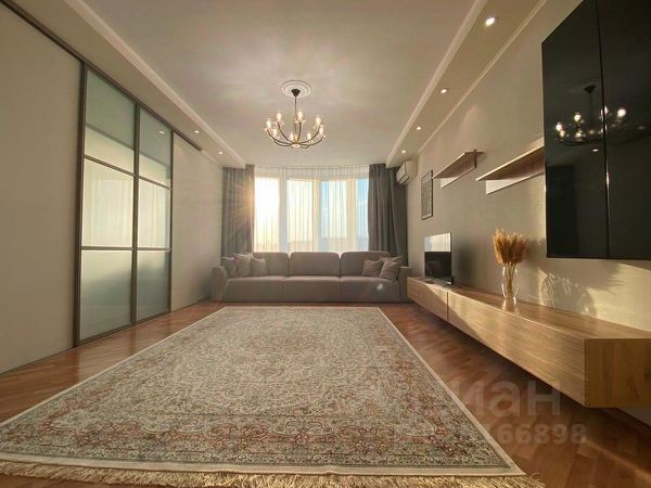 3 комнаты : Большая зал-кухня, 2 спальни, 2 гардеробные, большая ванна-санузел, коридор, большая теплая лоджия (кабинет) с подогреваемым полом. Квартира после ремонта, никто не жил.