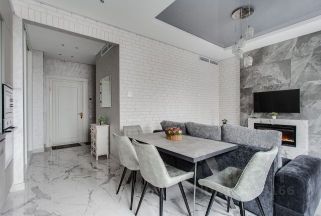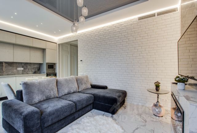Уютная круглая гостиная (зал): Сердце квартиры с электрокамином (эффект живого огня), огромным раскладным диваном, полукруглым телевизором и аудиосистемой. Три окна: вид на ВТБ Арена и тихий двор.