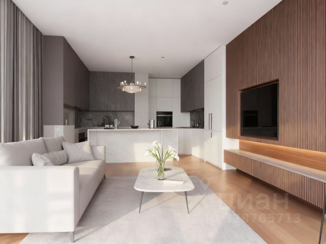 Планировка: большая кухня-гостиная 37м², 2 изолированные комнаты 15м² и 19м², два санузла с ванной/душевой, гардеробная, тёплая лоджия.