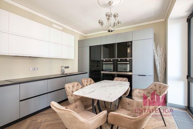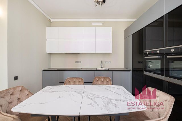 В квартире сделан дизайнерский ремонт, что делает её не только уютной, но и стильной. Здесь есть вся необходимая мебель как на кухне, так и в комнатах. Из техники — кондиционер, холодильник, посудомоечная машина, телевизор и стиральная машина. Совмещенный санузел оборудован ванной. Окна выходят на улицу, что обеспечивает хорошее естественное освещение.