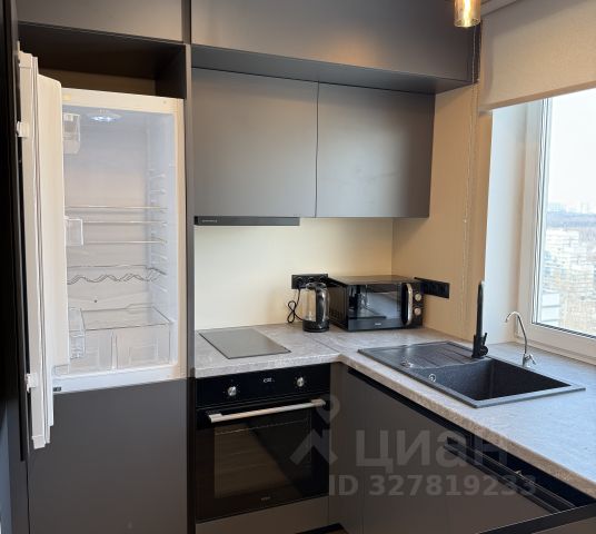 * кухня: холодильник, встроенная стеклокерамическая варочная поверхность и духовка Bosch, вытяжка Weissgauff, СВЧ-печь Panasonic, посудомоечная машина Bosch