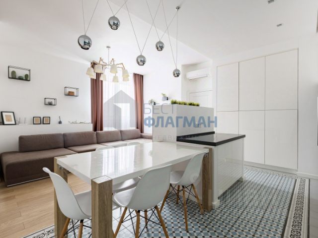 Просторная зона с диванами (Франция), мебелью и обеденной группой (Италия), телевизор 60, музыкальный центр Yamaha с Bluetooth, кондиционер.
