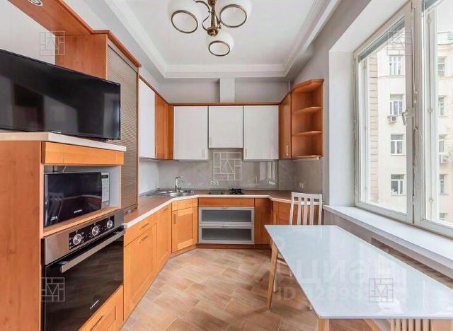 ID 41195. Красивая 3-комнатная квартира с дизайнерским ремонтом в фасадном доме на Патриарших прудах. Общая площадь — 115 кв. м., высота потолков — 3,2 м, расположена на 4 этаже. Просторная гостиная объединена с обеденной зоной, откуда предусмотрен выход на балкон. Интерьер выполнен в современном стиле. Установлены теплые полы, система кондиционирования, спутниковое ТВ, высокоскоростной интернет. Квартира полностью меблирована и укомплектована техникой. Функциональная планировка: отдельная кухня площадью 13 кв. м., оснащена необходимой техникой, включая посудомоечную машину, основная спальня с собственной ванной комнатой, гостевая спальня, гостевой туалет с душевой кабиной, а также хозяйственная и гардеробная комнаты. Окна выходят в тихий внутренний двор. Дом расположен в историческом центре Москвы, в пешей доступности от станций метро "Маяковская" (7 минут), "Пушкинская" (11 минут) и "Тверская" (12 минут). В непосредственной близости — парки, музеи, рестораны, школы и детские сады. Возможна парковка во дворе. Please feel free to contact Intermark Real Estate to get detailed information or to set up a viewing! 24/7 help desk service with English-speaking operators В квартире: С мебелью, Парковка, Посудомоечная машина, Стиральная машина, Душевая кабина, Теплые полы, Спутниковое/кабельное телевидение, Видеонаблюдение, Интернет, Балкон, Европланировка, Ванна, Интерьер в современном стиле, Кондиционер, Гардеробная Сдается 3-комнатная квартира с евроремонтом на улице Малая Бронная в Москве.