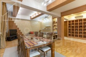 ID 41195. Красивая 3-комнатная квартира с дизайнерским ремонтом в фасадном доме на Патриарших прудах. Общая площадь — 115 кв. м., высота потолков — 3,2 м, расположена на 4 этаже. Просторная гостиная объединена с обеденной зоной, откуда предусмотрен выход на балкон. Интерьер выполнен в современном стиле. Установлены теплые полы, система кондиционирования, спутниковое ТВ, высокоскоростной интернет. Квартира полностью меблирована и укомплектована техникой. Функциональная планировка: отдельная кухня площадью 13 кв. м., оснащена необходимой техникой, включая посудомоечную машину, основная спальня с собственной ванной комнатой, гостевая спальня, гостевой туалет с душевой кабиной, а также хозяйственная и гардеробная комнаты. Окна выходят в тихий внутренний двор. Дом расположен в историческом центре Москвы, в пешей доступности от станций метро "Маяковская" (7 минут), "Пушкинская" (11 минут) и "Тверская" (12 минут). В непосредственной близости — парки, музеи, рестораны, школы и детские сады. Возможна парковка во дворе. Please feel free to contact Intermark Real Estate to get detailed information or to set up a viewing! 24/7 help desk service with English-speaking operators В квартире: С мебелью, Парковка, Посудомоечная машина, Стиральная машина, Душевая кабина, Теплые полы, Спутниковое/кабельное телевидение, Видеонаблюдение, Интернет, Балкон, Европланировка, Ванна, Интерьер в современном стиле, Кондиционер, Гардеробная