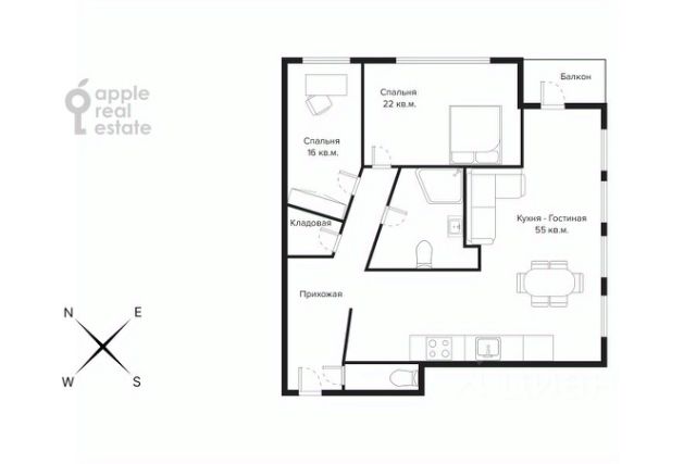 Функциональная планировка: большая спальня, изолированный кабинет(можно как детскую), просторная кухня-гостиная, санузел с ванной и душевой, постирочная, 2 гардеробные, прихожая.