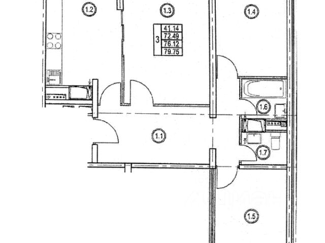 Достоинства планировки: 2!!! санузла, окна с эркерами, кухня 13 кв.м., просторные и оборудованные коридоры, кладовая, окна во двор.