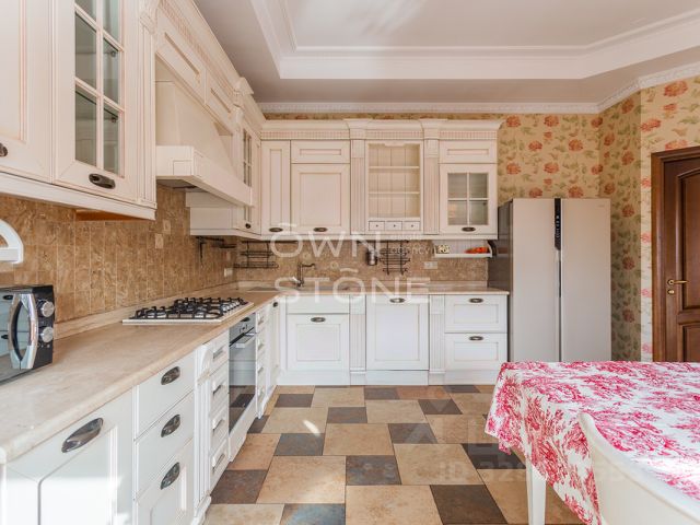 и плита Siemens, вытяжка Bosch, холодильник Liebherr, капсульная кофе-машина Nespresso, чайник Kenwood.