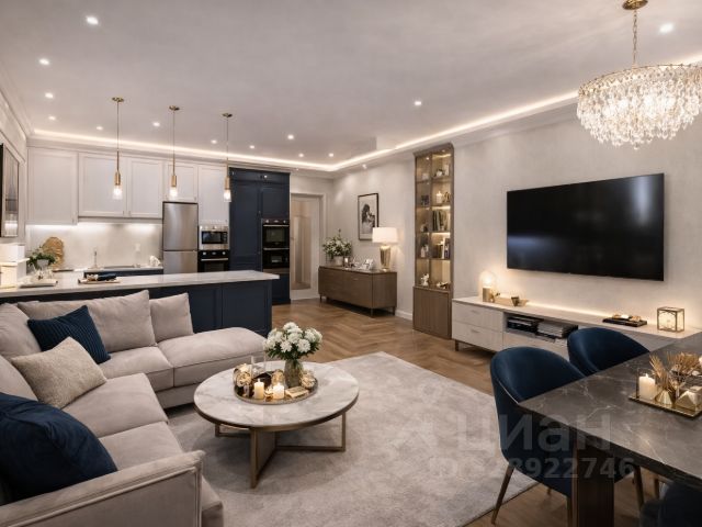 В каждой комнате установлены кондиционеры. Кухня встроена, есть необходимая бытовая техника, включая посудомоечную машину. Гостиная очень уютная, с обеденной зоной и кухней, где будет приятно собираться на семейные вечера, 2 изолированные спальни 18 и 20 кв.м., в одной спальне стеклянные двери с выходом на полукруглый каменный балкончик. Напротив спальни есть удобная гардеробная. В большом совмещенном санузле установлена ванна, подключен водяной теплый пол. Просторная прихожая имеет удобные встроенные шкафы для одежды.