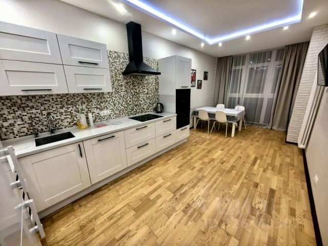 - Кухня-гостинная, укомплектованная кухня со встроенной техникой ( варочная панель, духовка с свч, холодильник с морозильной камерой, посудомоечная машина, питьевой фильтр, измельчитель пищевых отходов ). На кухне утеплённая лоджия - окна на Юг.