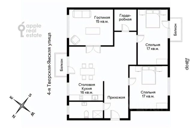 Балкон с видом на тихий двор. Все окна предлагают прекрасный вид.