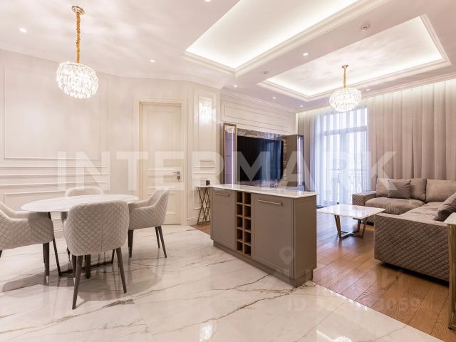 ID 43997. Изысканные уникальные 3-комнатные апартаменты премиум-класса с видом на Кремль на Софийской набережной. Дорогостоящий ремонт с использованием только современных натуральных материалов, качественные инженерные сети, системы безопасности и климат-контроля. Полная комплектация мебелью, бытовой техникой и сантехникой престижных марок. Установлен бойлер, теплые полы, стиральная и сушильная машины, проведен интернет, ТВ-панель 85 дюймов, центральная пожарная сигнализация. Общая площадь 110 кв. м. Грамотное зонирование пространства: просторная гостиная с кухней-столовой, спальня с гардеробной, кабинет, постирочная, 2 ванные комнаты. Окна квартиры выходят на южную сторону, 2 балкона с видом на Кремль. Потолки 3,1 метра. Входная группа дома представительского уровня с круглосуточной рецепцией и консьерж-сервисом. В доме бассейн, сауна и тренажерный зал. Работает кафе и салон красоты. В стоимость входит одно машино-место в подземной парковке. В ближайшем доступе множество кафе и ресторанов, различных магазинов, театров, памятников архитектуры и мест для прогулок. Можно с животными. Please feel free to contact Intermark Real Estate to get detailed information or to set up a viewing! 24/7 help desk service with English-speaking operators В квартире: С мебелью, М/место в подземном паркинге, Бассейн, Посудомоечная машина, Стиральная машина, Бойлер, Душевая кабина, Теплые полы, Кондиционер, Тренажерный зал, Видеонаблюдение, Сигнализация, Охрана, Интернет, Балкон, Видовая квартира, Можно с животными, Европланировка, Ванна, Интерьер в современном стиле, Консьерж, Кондиционер, Апартаменты, Гардеробная комната, Лифт, Кухонная мебель, Окна на улицу, Окна во двор 3-комнатная квартира с евроремонтом в районе Якиманка в Москве.