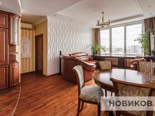 Сдается просторная евро-трехкомнатная квартира площадью 97,7 м² на высоком 24 этаже в современном монолитном ЖК "Авеню 77" в Северном Чертаново. Планировка идеально подходит тем, кому важны пространство и комфорт: две отдельные спальни, большая кухня-гостиная, два санузла, гардеробная и хозяйственная зона. Квартира полностью укомплектована мебелью и техникой — можно заехать сразу. Интерьер выполнен в классическом стиле: массивная деревянная кухня, обеденная зона, кожаная мягкая мебель, вместительные шкафы и продуманное хранение. В спальне — полноценная кровать, прикроватные тумбы, туалетный столик и комод. Вторая спальня может использоваться как детская, гостевая или кабинет. В квартире предусмотрены два санузла: просторная ванная комната с угловой ванной/джакузи, стиральной машиной и мебелью для хранения, а также отдельный санузел с душевой кабиной. Есть вместительная гардеробная/кладовая. Одно из главных преимуществ квартиры — панорамные окна и красивый вид на город, зеленую зону и водоем. Много света, ощущение простора и приватности благодаря высокому этажу. Дом расположен в развитой локации: рядом метро Чертановская, магазины, детские и спортивные площадки, прогулочные зоны, зелень и вся необходимая городская инфраструктура. Современный жилой комплекс, удобный подъезд и комфортная среда для жизни. Квартира подойдет тем, кто ищет не просто жилье, а большую, готовую к проживанию квартиру с полноценной планировкой, видом и удобной локацией. Сдается 3-комнатная квартира с мебелью в районе Чертаново Северное в Москве.