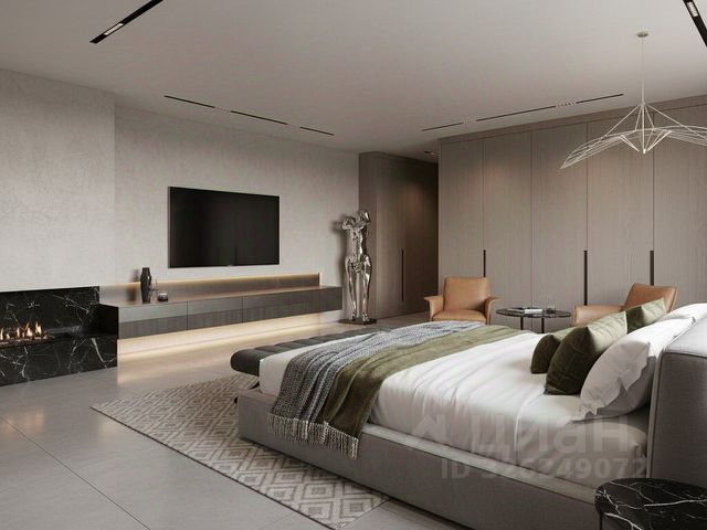 В спальнях: двуспальная кровать, шкаф.