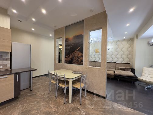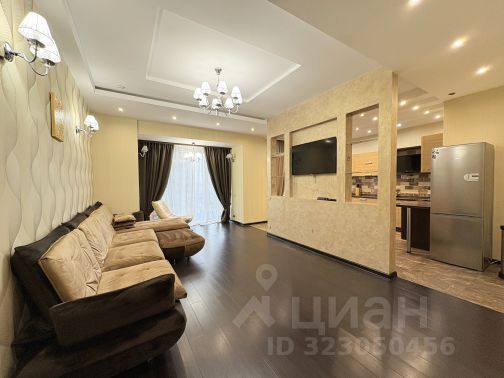 Кухня-гостиная + две спальни. Две ванные комнаты. Гардеробная комната. Полностью укомплектована мебелью и бытовой техникой. Окна во двор, в квартире очень тихо. Парковка во дворе.