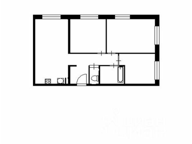Две изолированные комнаты (~12 м² каждая), разделённые коридором: