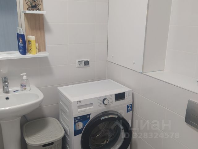 Совмещённый, с ванной, полотенцесушителем и новой стиральной машиной Indesit.