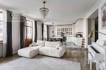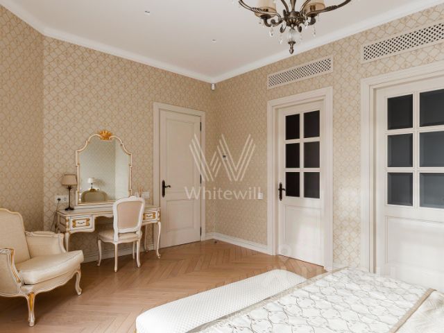 Квартира с классическим интерьером, продуманной планировкой и качественной отделкой. Просторная гостиная подходит для семейного отдыха и приёма гостей. Отдельная столовая с большим обеденным столом и панорамным видом на Итальянский квартал и колокольню Николы Чудотворца. Две спальни, включая мастер-спальню с собственной ванной комнатой и гардеробной. Светлые тона, паркет, мебель из массива, люстры из дутого стекла. Расположение в центре Москвы: рядом Садовое кольцо, сад "Эрмитаж", Патриаршие пруды, рестораны и театры в пешей доступности. Тихий, обжитой район. Основные характеристики: 3 этаж, 173 м². Гостиная, кухня, столовая, мастер-спальня с ванной и гардеробной, вторая спальня, санузел с душем, отдельная гардеробная, санузел с постирочной. Техника Miele и Kuppersbusch. Подходит для семьи с детьми. Главное о доме. "Итальянский квартал" — семь клубных особняков высотой от 2 до 10 этажей, названных в честь Рима, Милана, Флоренции и других городов Италии. Средиземноморская архитектура с черепичными крышами, травертином и неоклассическими деталями создаёт камерный характер ансамбля. Во дворах в стиле римских амфитеатров — тихие прогулочные зоны и места для встреч. В составе комплекса работают фитнес-клуб с бассейном, spa-центр и детские пространства "Территория счастливого детства" и Piccolo School. Главное о локации. Тверской район живёт насыщенной культурной жизнью. В десяти минутах — сад "Эрмитаж" с фестивалями и концертами, театр "Новая опера" и гастромолл "Депо". Утро можно начать в Делегатском парке или в "Кофемании" на Новослободской, а вечером заглянуть в один из ресторанов на Белой площади. Для семей рядом лицей 1574 и детский сад 1497. До Садового кольца всего 500 метров, до Бульварного — пять минут, а до аэропорта Шереметьево удобно добраться на аэроэкспрессе от Савёловского вокзала. Комментарий эксперта. Меня зовут Олеся Минлигареева — брокер компании Whitewill. Я отвечаю за аренду этого лота. Свяжитесь со мной, чтобы получить расширенную презентацию, больше фотографий или договориться о просмотре. Могу провести экскурсию по локации и познакомить вас с этим домом. ID 4 369.