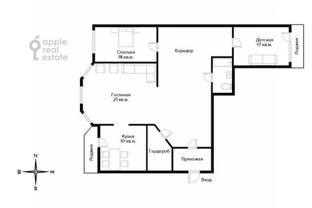 Площадь квартиры 76 м², в реальности намного просторнее, чем на фото.