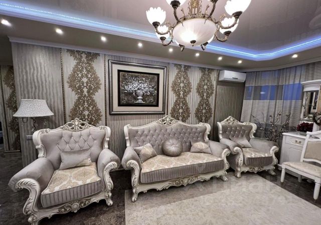 В комнате спальное место - большой диван Евро-книжка, а также еще один диван для релакса, стол, красивая новая белая гостиная, два шкафа-купе, компьютерный стул.