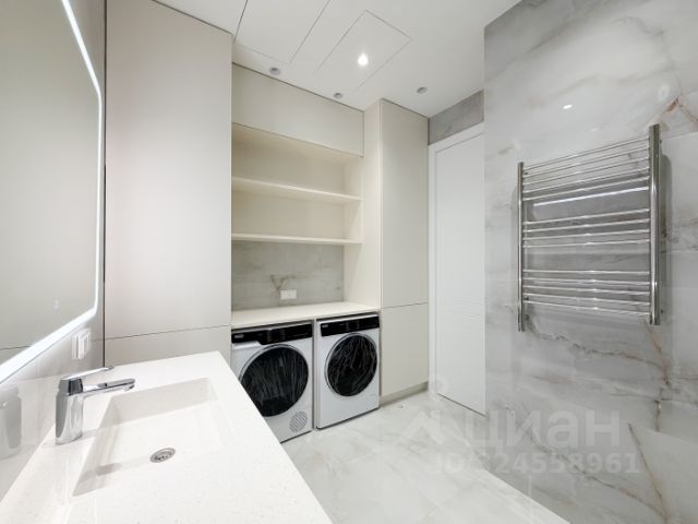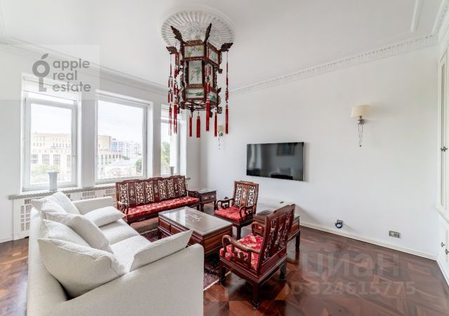Квартира частично меблирована, в квартире остается диван, кухонный стол, стулья, кровать, письменный стол. Предусмотрено много мест для хранения: встроенные шкафы в прихожей, шкафы в спальнях, комоды, кладовая. Из техники в квартире есть всё необходимое: стиральная машина, бойлер, духовой шкаф, электроплита, вытяжка, микроволновая печь, большой холодильник Maytag, телевизор, утюг, торшеры, кондиционеры. Проведен высокоскоростной интернет.