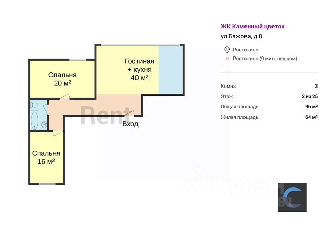 • ✓ Ищете объявления об аренде 3-комнатных квартир в районе Ростокино в Москве?