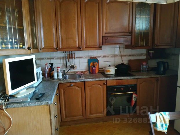 - Кухня-гостинная, укомплектованная кухня со встроенной техникой ( варочная панель, духовка с свч, холодильник с морозильной камерой, посудомоечная машина, питьевой фильтр, измельчитель пищевых отходов ). На кухне утеплённая лоджия - окна на Юг.