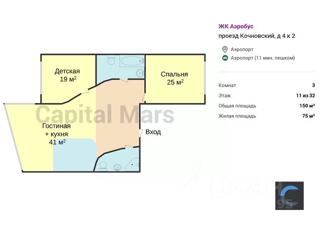 В ЖК Аэробус сдается просторная трехкомнатная квартира с дорогой и качественной отделкой и техникой. Квартира в отличном состоянии, так как ранее не сдавалась! По планировке: -Просторная кухня-гостиная. -Мастер-спальня со своим сан.узлом (с ванной) и большой гардеробной комнатой. Кровать 200х160 матрас King Koil (USA) -Комната свободного назначения, которую будущий наниматель может обставить на свой вкус. -Гостевой сан.узел с душевой кабиной. домашние животные обсуждаются в индивидуальном порядке по телефону. Подогрев пола в сан.узлах. Канальный кондиционер, который можно использовать на охлаждение\обогрев КРУГЛОГОДИЧНО! Квартира оборудована бытовой техникой бренда Miele. Стиральная машина с сушкой Electrolux. Натуральный паркет. ЖК Аэробус — современный жилой комплекс от крупнейшего девелопера Москвы Capital Group, идеально расположенный в САО, в районе метро Аэропорт. Комплекс предлагает высококлассный уровень жизни и широкую инфраструктуру для комфортного проживания. На территории ЖК Аэробус к услугам жителей: • 2 детские площадки, • 5 продуктовых магазинов, включая ВкусВилл и Магнит, • 4 салона красоты, • 6 кафе для приятного времяпрепровождения, • 2 стоматологии и аптека, • 4 пункта выдачи заказов (2 — OZON, 2 — Wildberries), • Винотека и ателье по пошиву и ремонту одежды, • Сервисная служба и хозяйственный магазин, • 2 частных детских сада, • Небольшая студия фитнеса и груминг-салон для домашних питомцев. Кроме того, ЖК располагает огромным трёхуровневым подземным паркингом с автомойкой, услугами детейлинга и хранением резины на первом уровне. Внешняя инфраструктура: • В 5-7 минутах пешком находится фитнес-клуб Crocus Fitness с бассейном, сауной и хаммамом. • В шаговой доступности — продуктовые магазины, школы, детские сады, салоны красоты, пункты выдачи заказов и аптеки. ЖК Аэробус — это место, где современный комфорт и городская жизнь сочетаются с продуманной инфраструктурой и удобством для всех жителей.