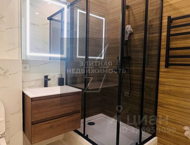 — в одном — просторная душевая 80х120 см, унитаз, зеркало, система хранения, полотенцесушитель;