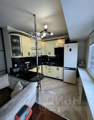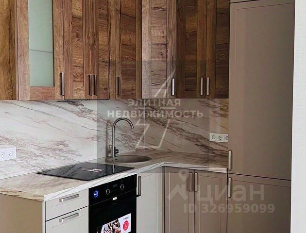 Установлен кухонный гарнитур со встроенной техникой: холодильник No Frost, вытяжка, варочная панель, духовой шкаф и посудомоечная машина. Кухня полностью готова к использованию.